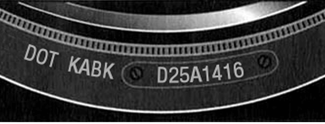 The tire identification number is located on one side of each tire. It is always just above the rim and preceded by the letters "DOT", as shown in the photo to the right.