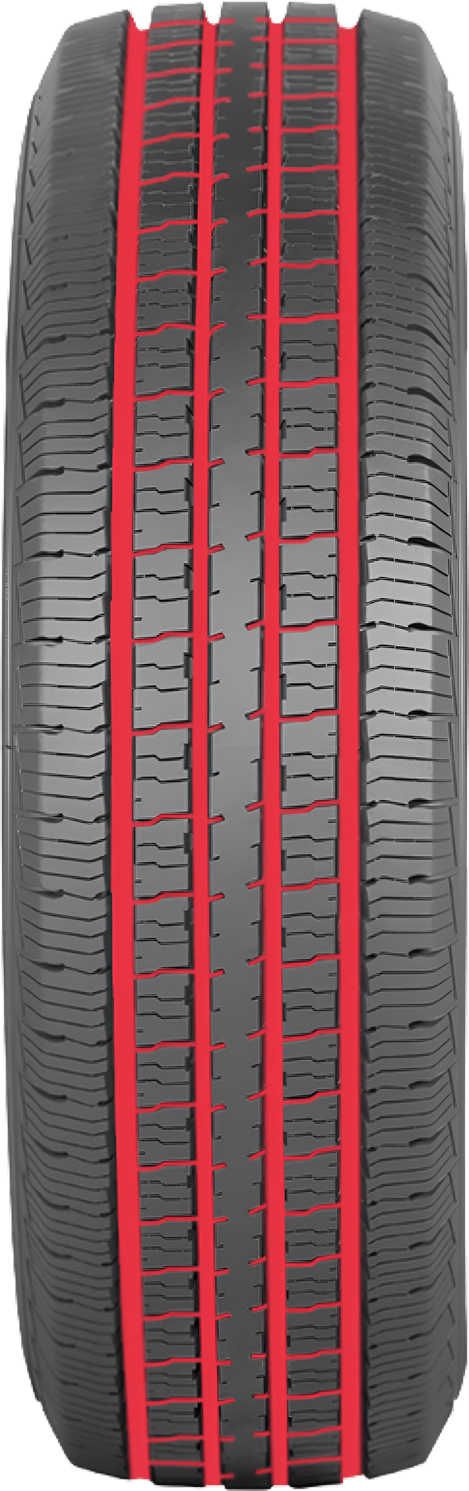 Coupled shoulder elements add the muscle where it counts, supporting heavier hauls and helping the tread wear evenly so the tire stays trustworthy mile after mile.